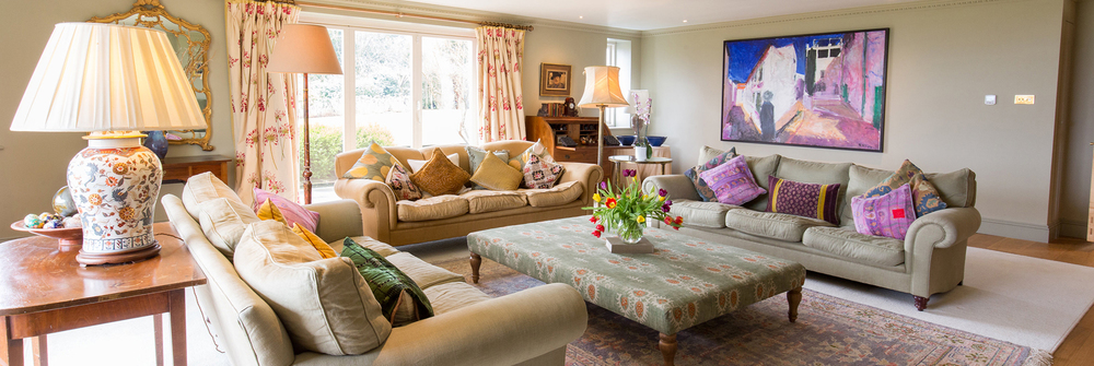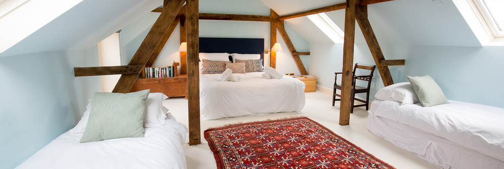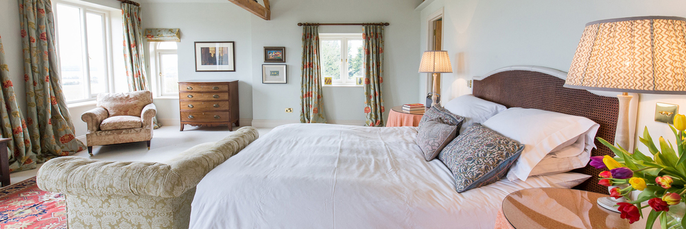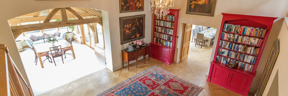 The whole house is an eclectic mix of old and contemporary that comes together in a seamless blend of luxury modern living; warm Parquet floors, thick antique rugs, Farrow & Ball colours, original art works everywhere, and heaps of books and DVDs. Wait ‘til you see the opulent downstairs loo, and oh my, the conservatory! Light pours in from three sides of full height glass; sit round the hand-crafted table for morning coffee whilst you get a load of those views, step out onto the terrace for a breath of fresh country air.
