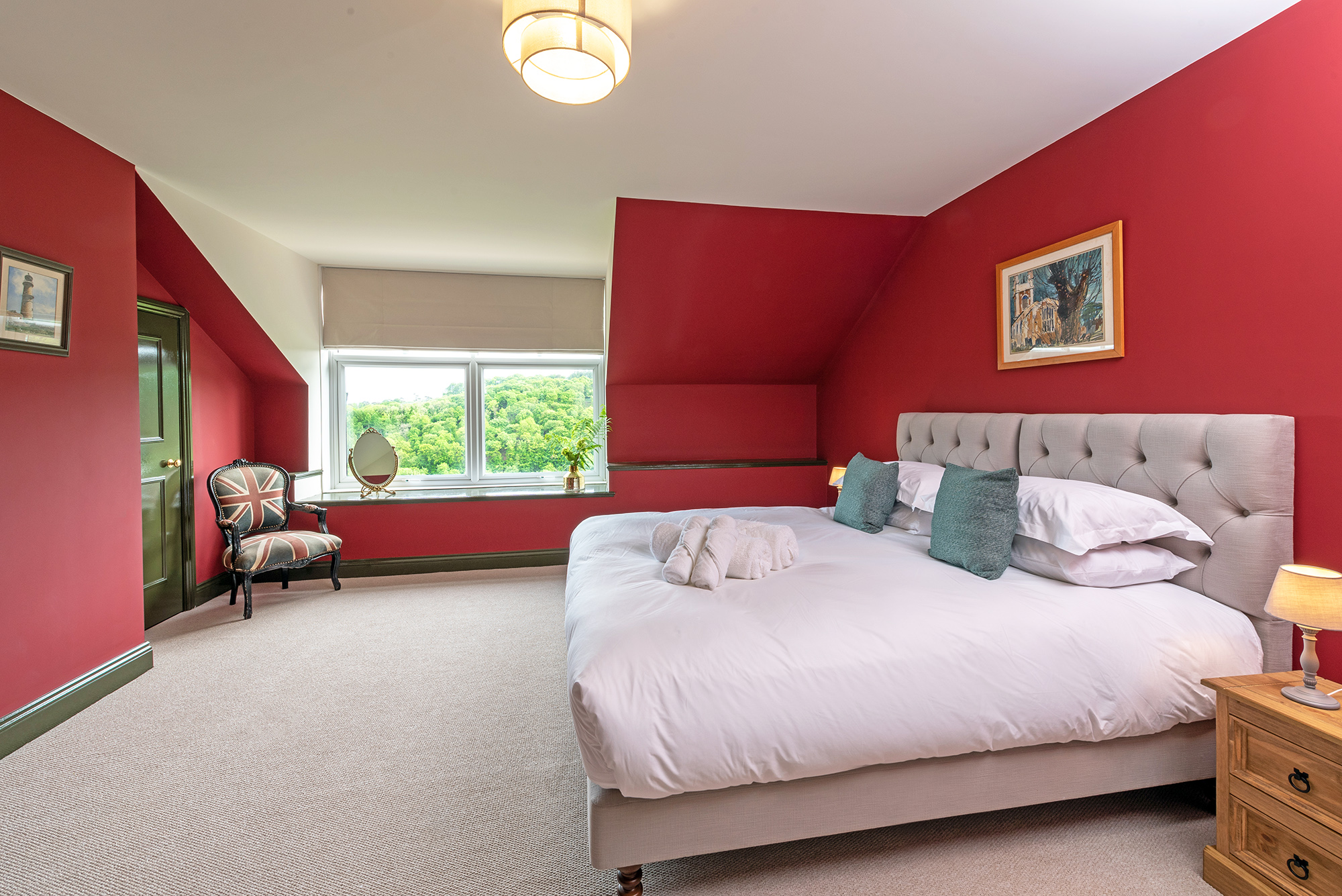 First floor, super king bed, ensuite bathroom with bath and separate shower.