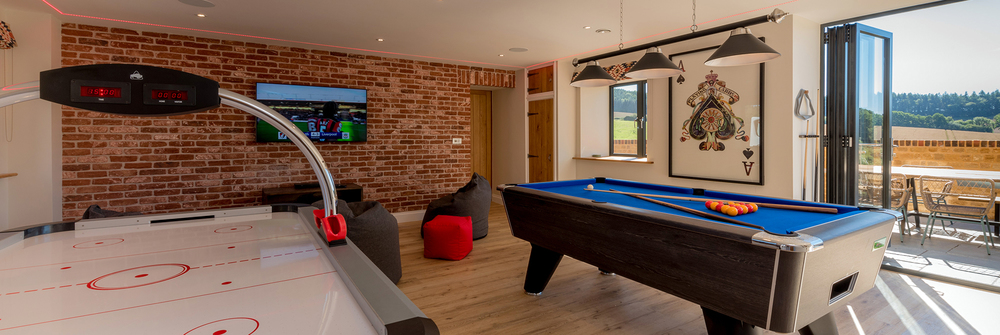If you’re looking for a big holiday house for 30 with a private pool and hot tub, somewhere you can completely get away from it all, Levity in Somerset will suit you down to the ground. High on a hill surrounded by glorious countryside, Levity sleeps 26 people in 13 ensuite bedrooms, with room for 4 more guests at an extra charge per person. There's a games room, children’s play area, and the luxury of a stunning spa hall with a heated pool, sunken hot tub and sauna – yours, all yours for the duration of your stay.