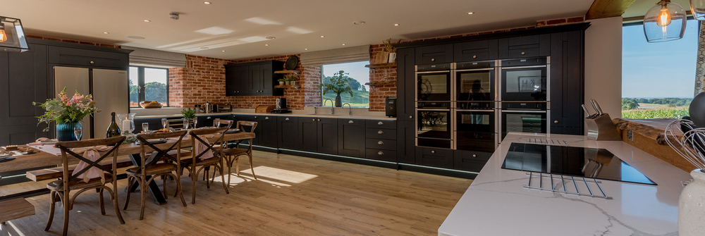 You can stay in this enormous holiday house for up to 30 with a private pool and hot tub for a whole week, a midweek break or for a weekend; everyone will be happy as there’s something for all ages. Teenagers (and Dads!) can hang out in the games room, the littl’uns can romp about on the lawns and the play equipment, and you can all have a lark in the pool together. There’s heaps of space and if you’re here celebrating and you get a little carried away, there’s room to dance and socialise in the huge kitchen/diner so no-one need miss out on the fun.
