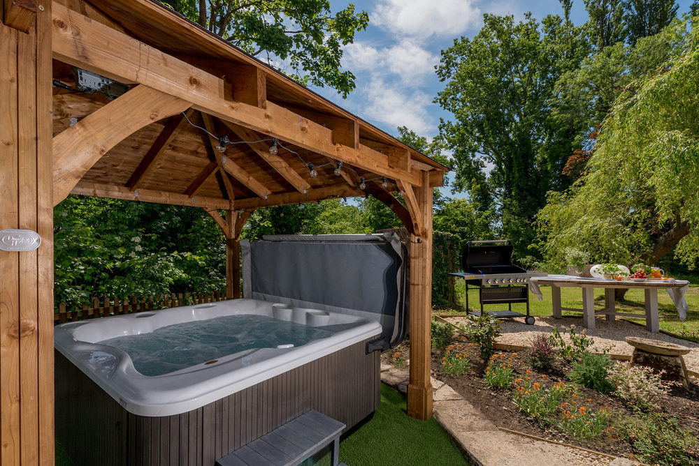 The beauty of the hot tub is that it’s sat beneath a sturdy wooden gazebo, so it gives you a bit of shelter and shade, whichever you might need. A leisurely natter in the hot tub is very nice, but get this, if you’re very quiet you might spot some of the wildlife that comes and goes here; it’s not unusual to see deer and foxes in the garden, rabbits nibbling the grass, and the flash of a woodpecker darting through the trees. What a treat!