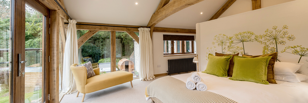 This was no easy renovation though; for George it’s been a labour of love, and a very stressful one at that. Jumping hoops to get through the planning process was a very trying time and to add to his woes the financing caused no end of a headache – in fact the initial budget was just 25% of what was finally spent on the project! As you can imagine, that gave George the jitters, so when a friend suggested he let out the Old Chicken House to bring a bit of money in, he jumped to it and moved into a caravan on the drive. The letting was such a success that there was no turning back – George’s eyes had now been opened to the holiday rental market and so he got in touch with Sleeps12. Yes, it would work, we said, of course it would, people will love it, especially with a few additions like a hot tub and a sauna… Then there was no stopping him, it was blood, sweat and tears as George and his mate Adam worked like troopers to get Otterhead House finished and ready for letting. After toiling solidly for 110 days, the cottage was finally finished on July 4th, just in time for the holiday let market to open up after the first lockdown came to an end.