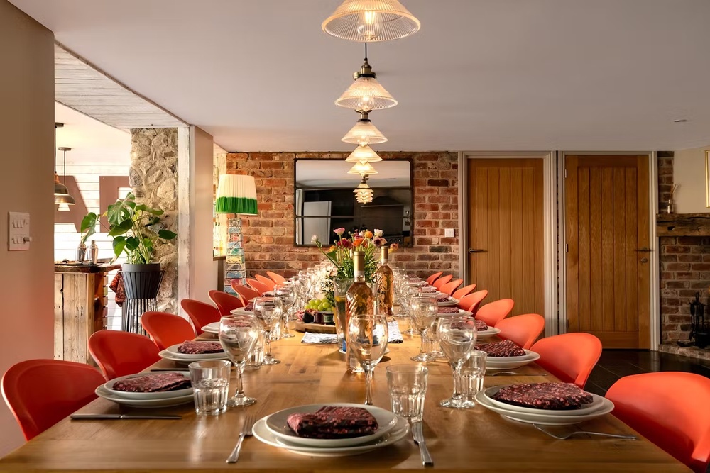 What sets Heddinay apart from most other large group holiday houses is that ALL bedrooms are en-suite. Yep, every single one of them. There are 10 in the main barn, which sleeps 20, and 3 in a smaller barn, that sleeps 6. And if you need room for a couple of extra guests, subject to availability there’s a gorgeous self-contained Annexe for 2 more adults (extra charge). Turn back the clock a few decades and the barns played their part in the life of a busy working farm, but a carefully considered renovation brings them right into the 21st century, utterly transformed into award-winning, luxury group accommodation. Interiors are bright and chirpy, colourful and quirky and there’s SO much space! The main barn has a supersized open plan living space where you can all gather, there’s more than enough room to eat together inside and out, you’ll have your own bar, and kitchens are fully-equipped with ample oven space and lots of big pots and pans.