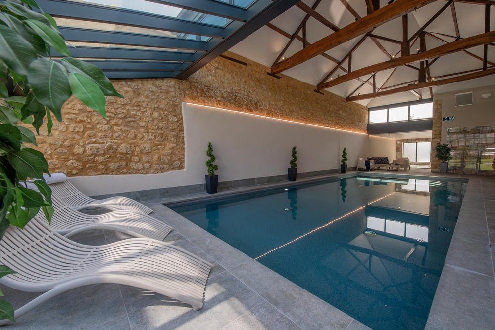 Supersized holiday house in Somerset sleeping 26 people in 13 ensuite bedrooms, with room for 4 more guests, charged extra per person. Private spa hall with swimming pool, hot tub, and sauna, games room, children’s play area, outdoor table tennis and rustic garden hut. 2 cots (age 2 yrs and under). 3 dogs welcome (small charge per pet).