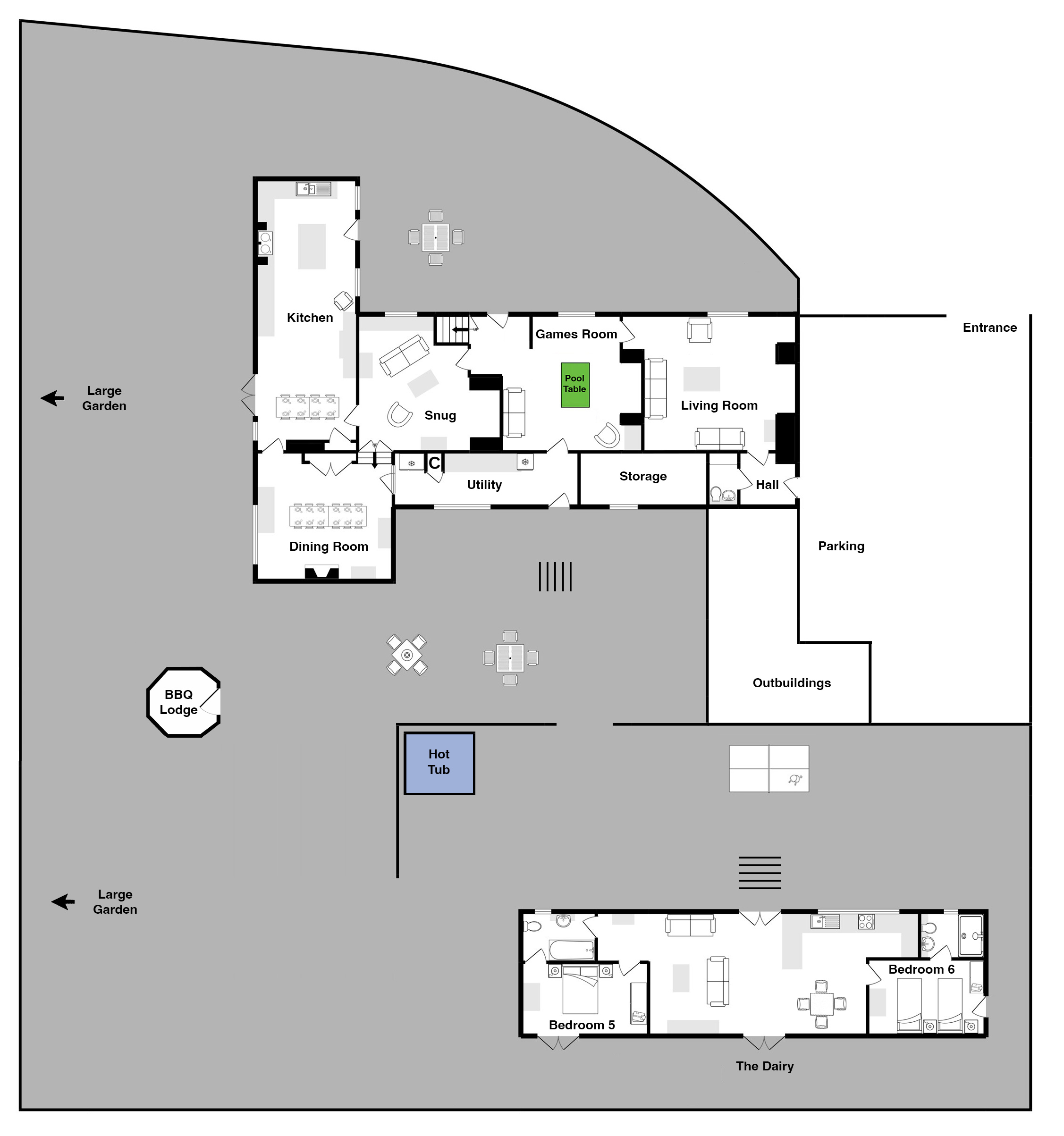 1 highchair and 1 booster seat are available for the house and 1 highchair is available for the annexe. If requested these will be left in the kitchens for you.
