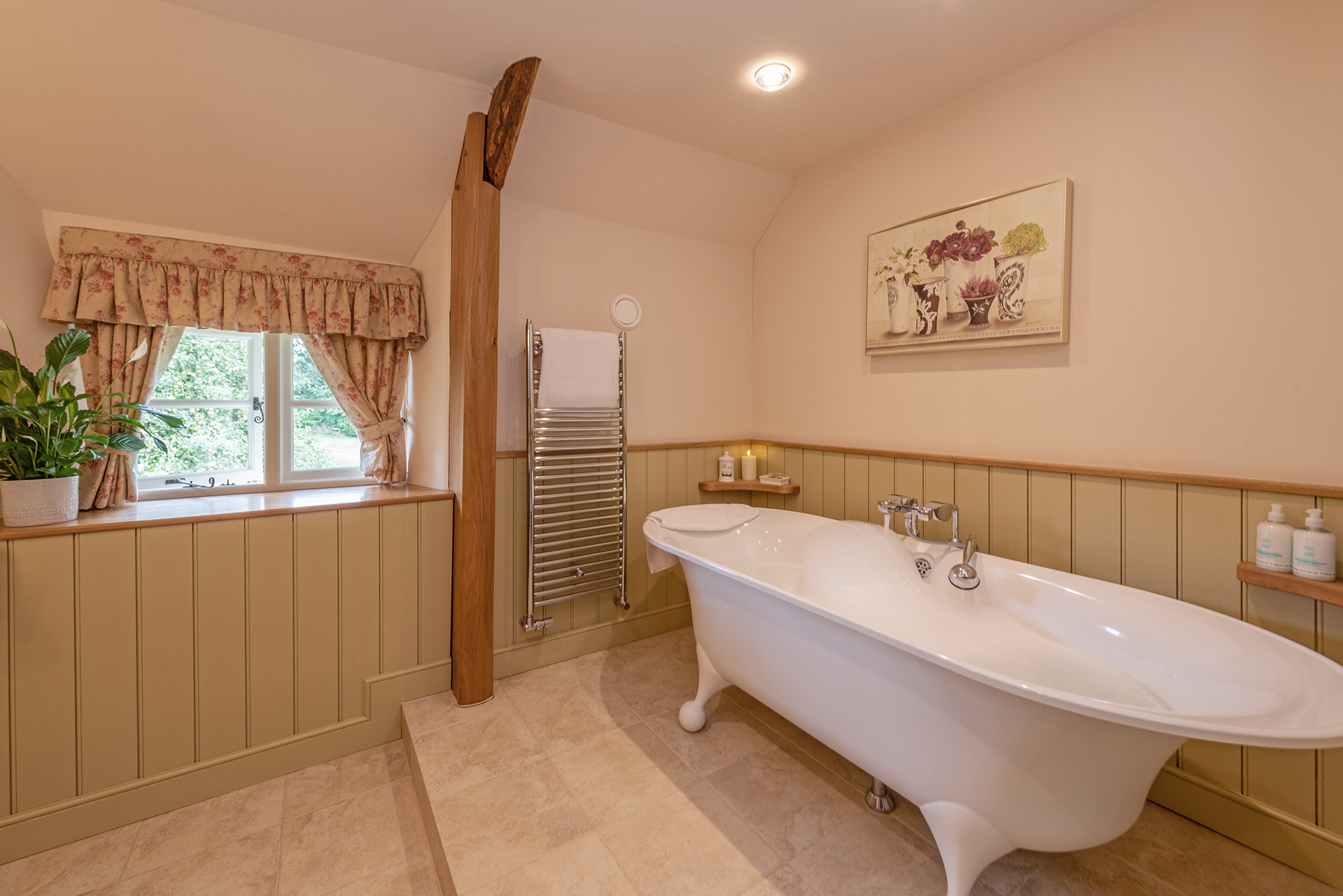 Big Thatch, Devon - The family bathroom has a roll top bath and a separate shower -