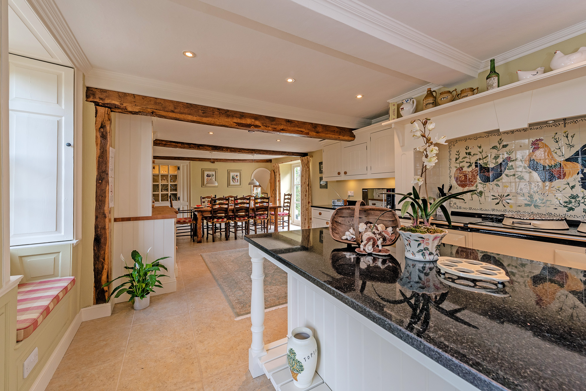 Big Thatch, Devon - The large kitchen has French doors out to the gorgeous gardens -