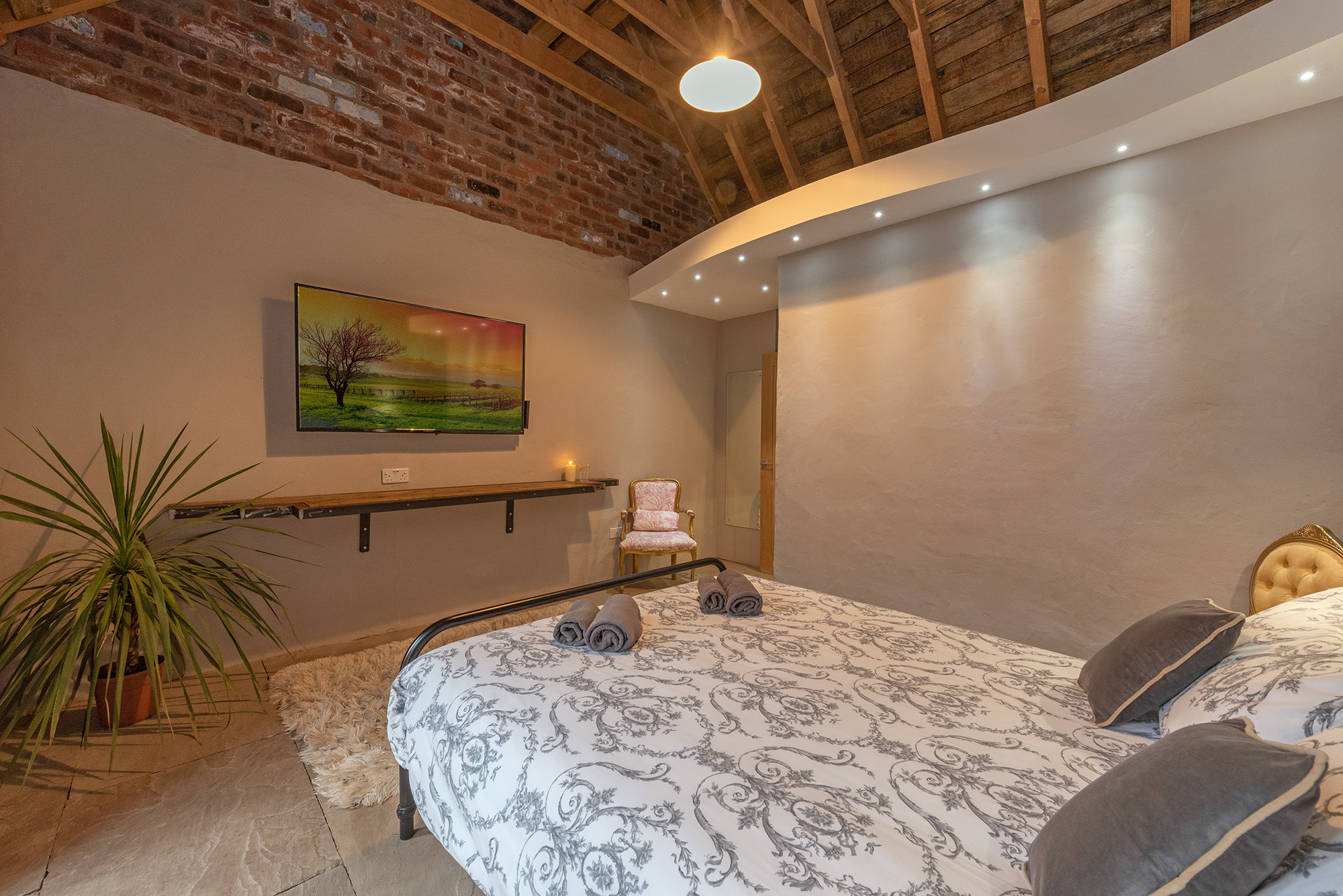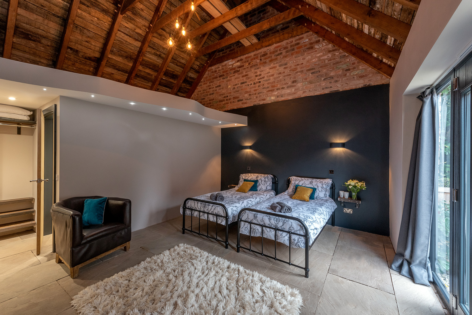 Boogie Barn: Bedrooms are open to the rafters, giving a wonderful modern-rustic feel -