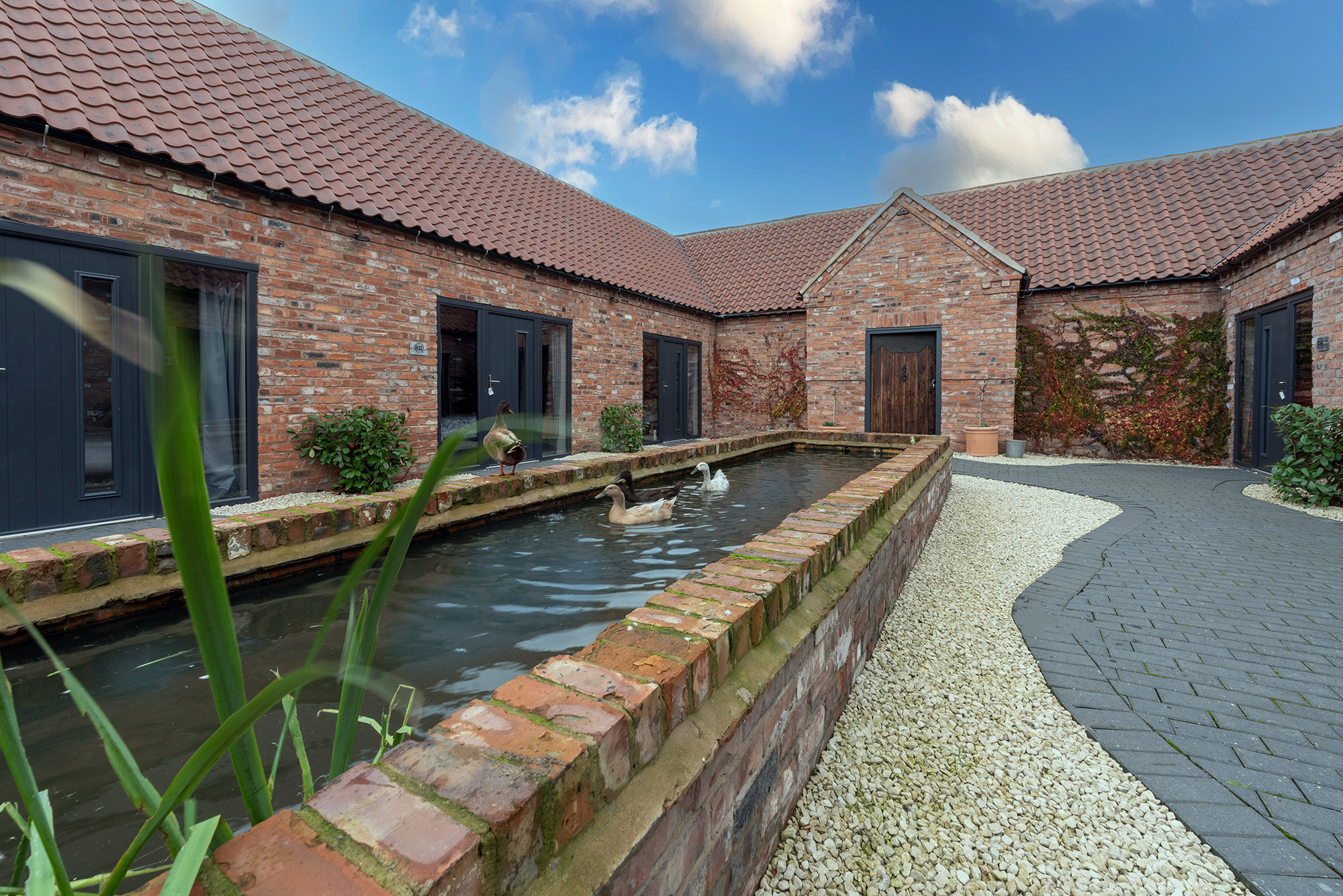 Boogie Barn: The resident ducks like to hang out on the pond in the courtyard -