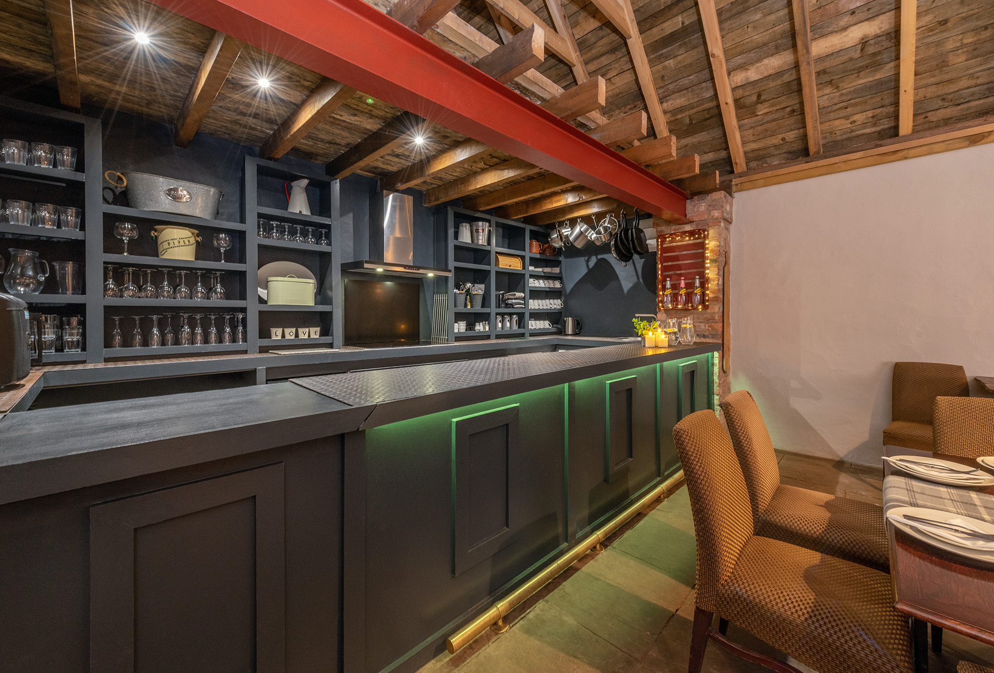 Boogie Barn: At the end of the open plan living space is the kitchen/bar -