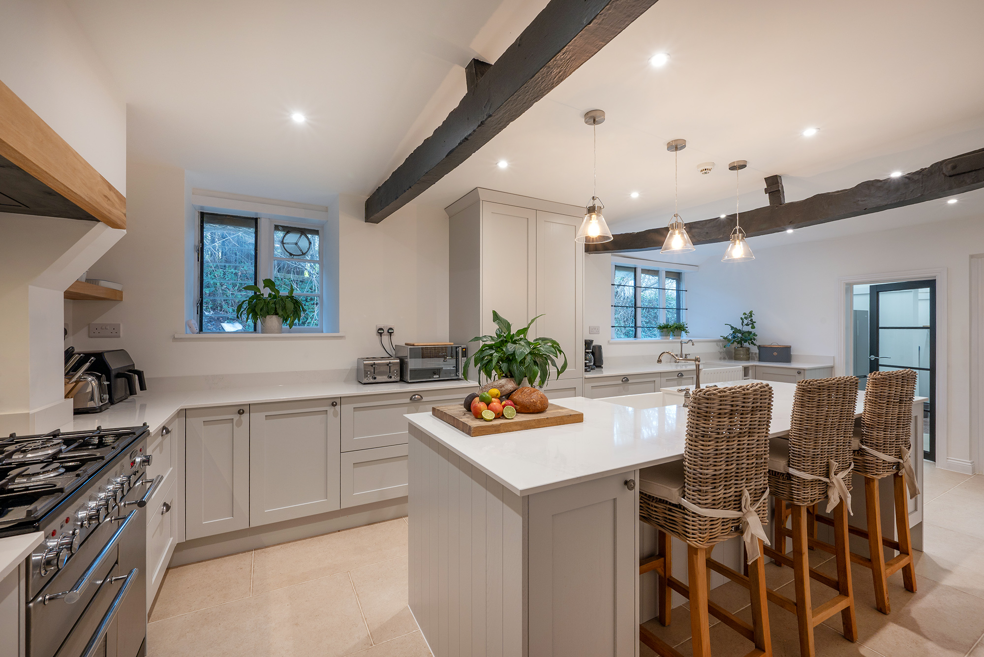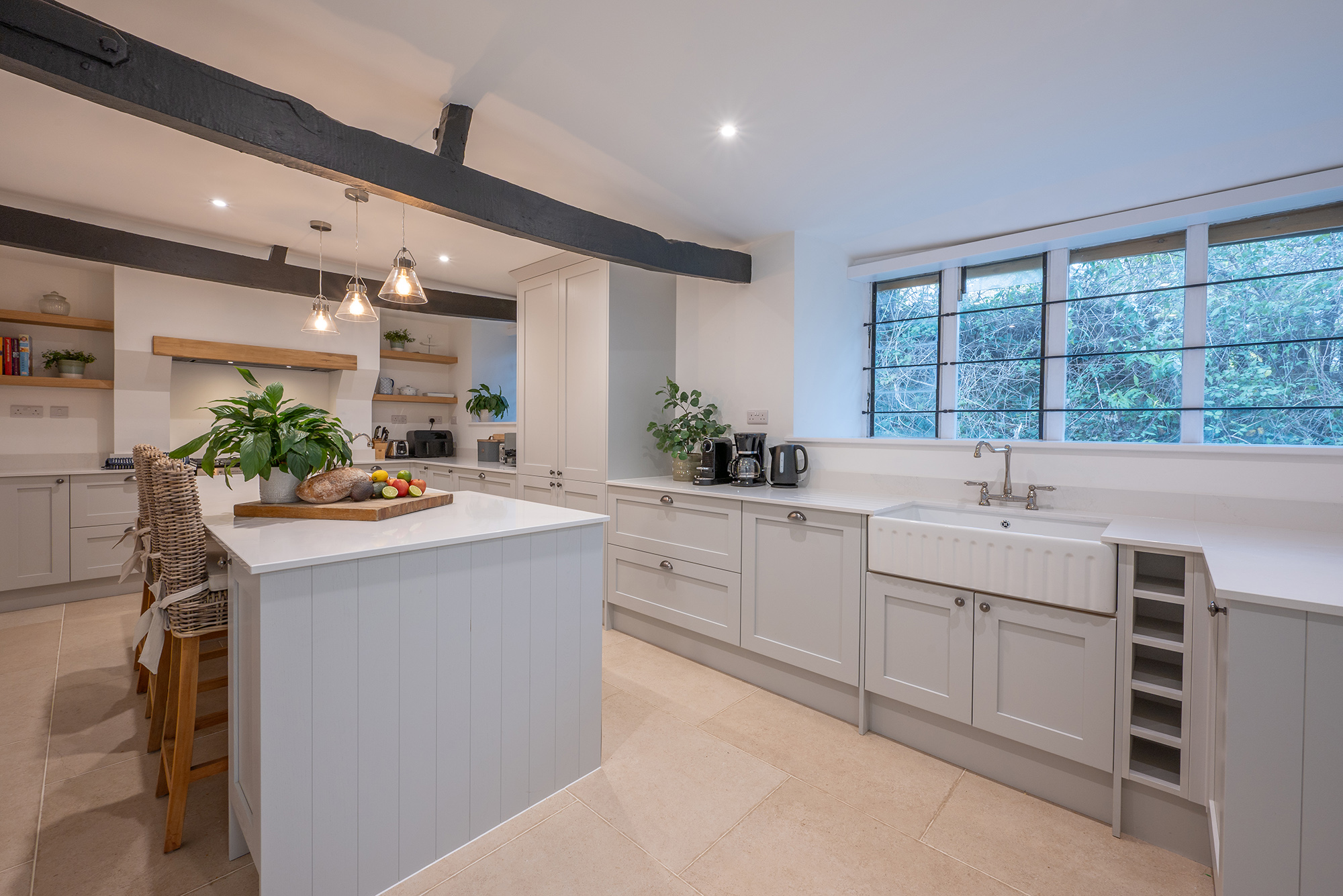 Grove House: The kitchen is modern farmhouse style - and so well equipped! -