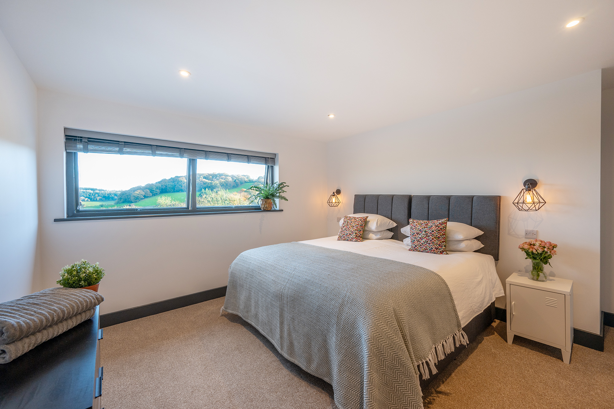 Hares Barton - Bedroom 9: Above the games room, with views over the Devon countryside Bedroom 9