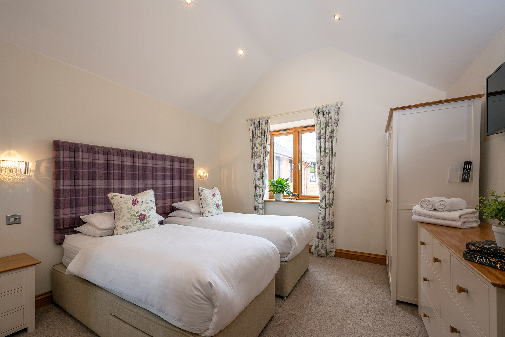 Ground floor, zip and link beds (super king or twin), full size cot