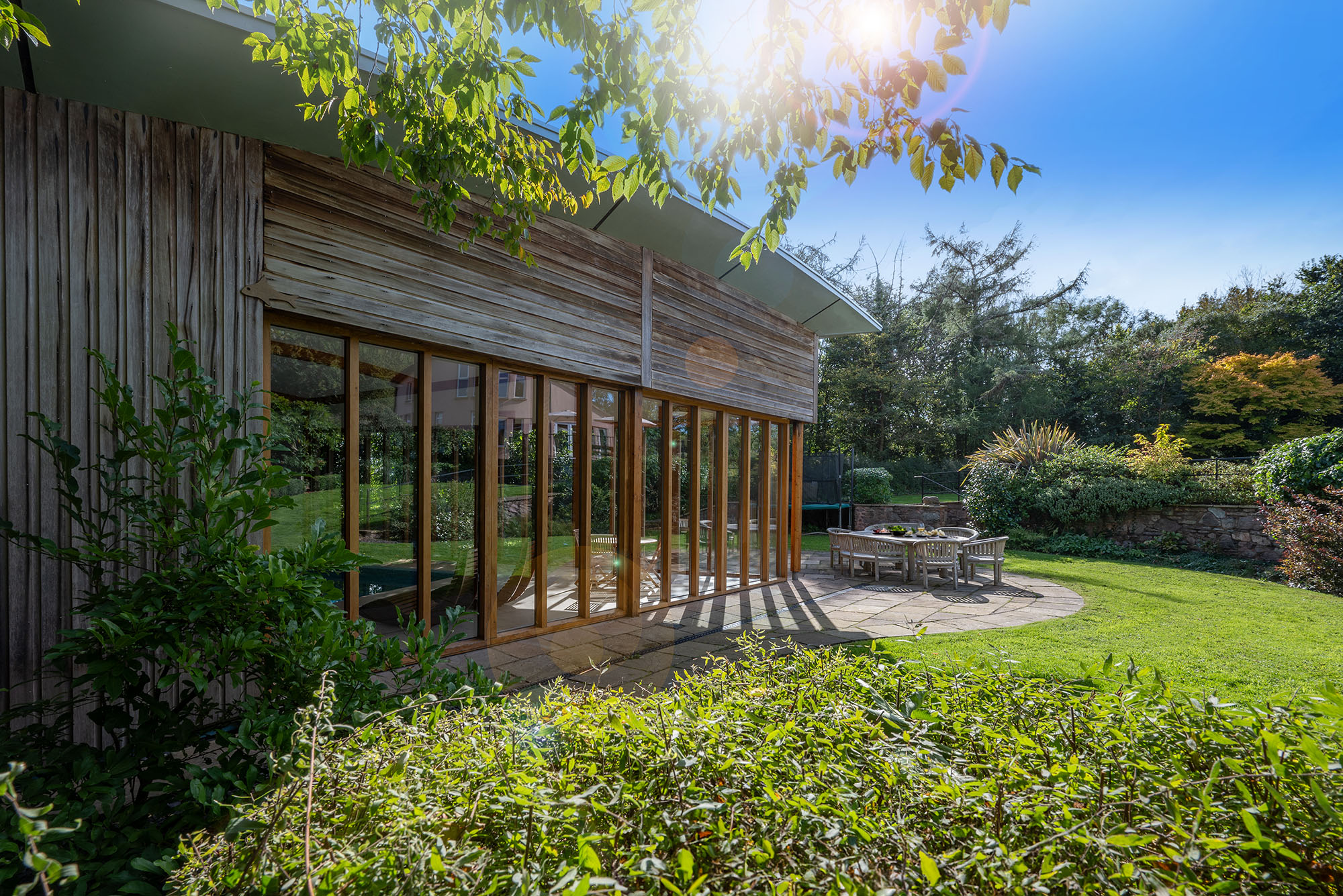 Jays Roost - House 2: The living area opens onto a balcony with steps down to the garden -