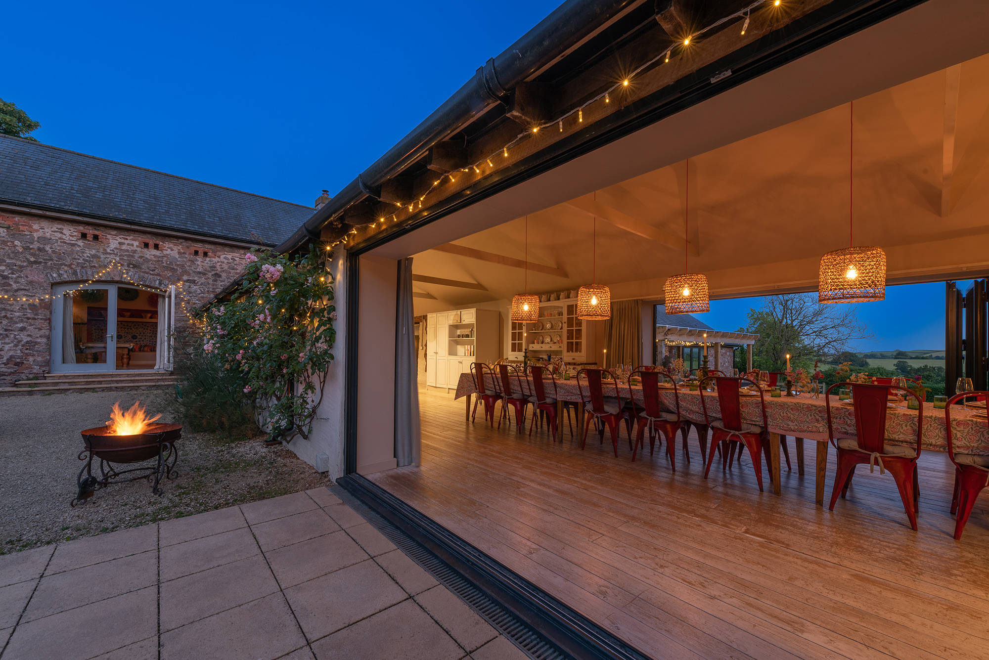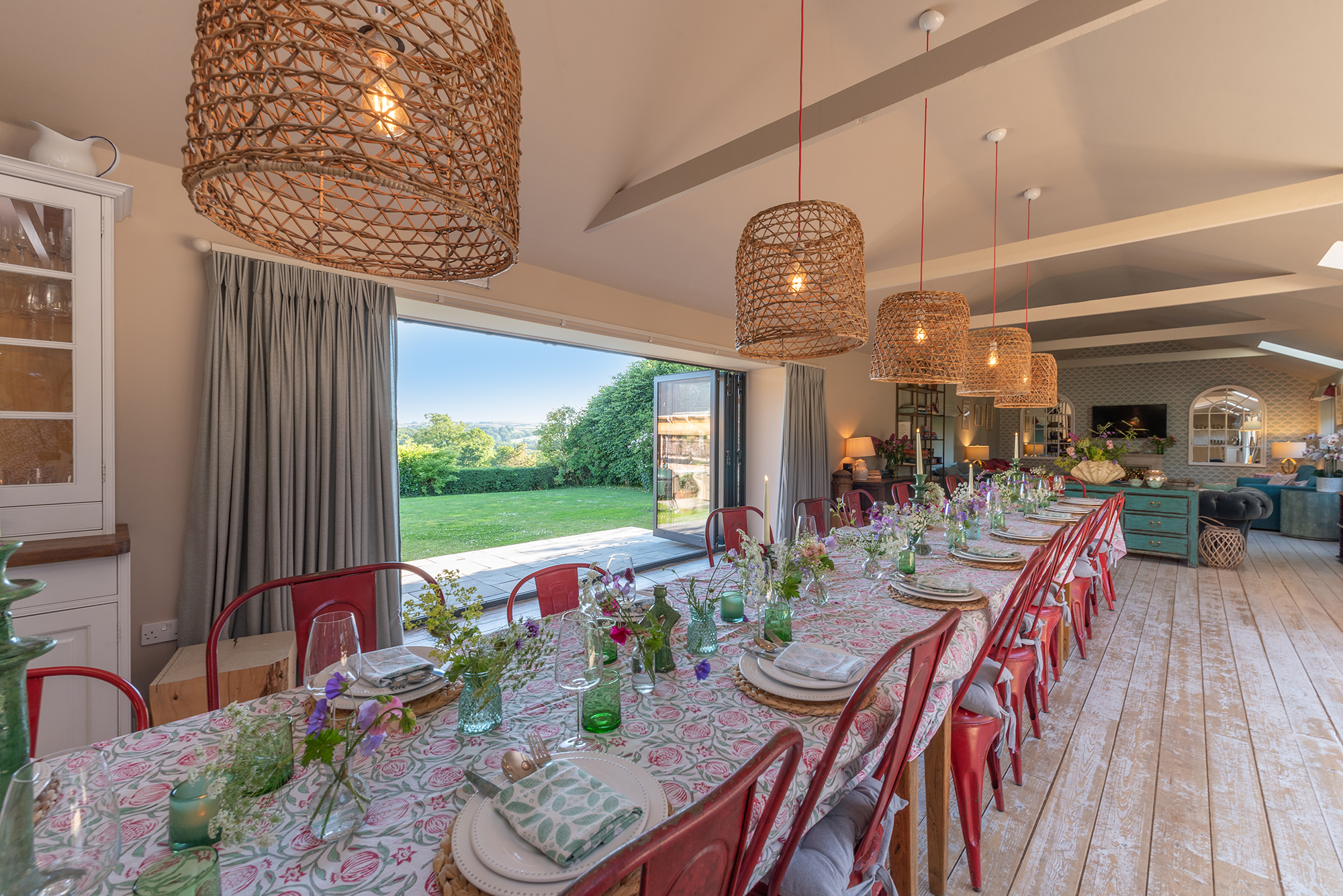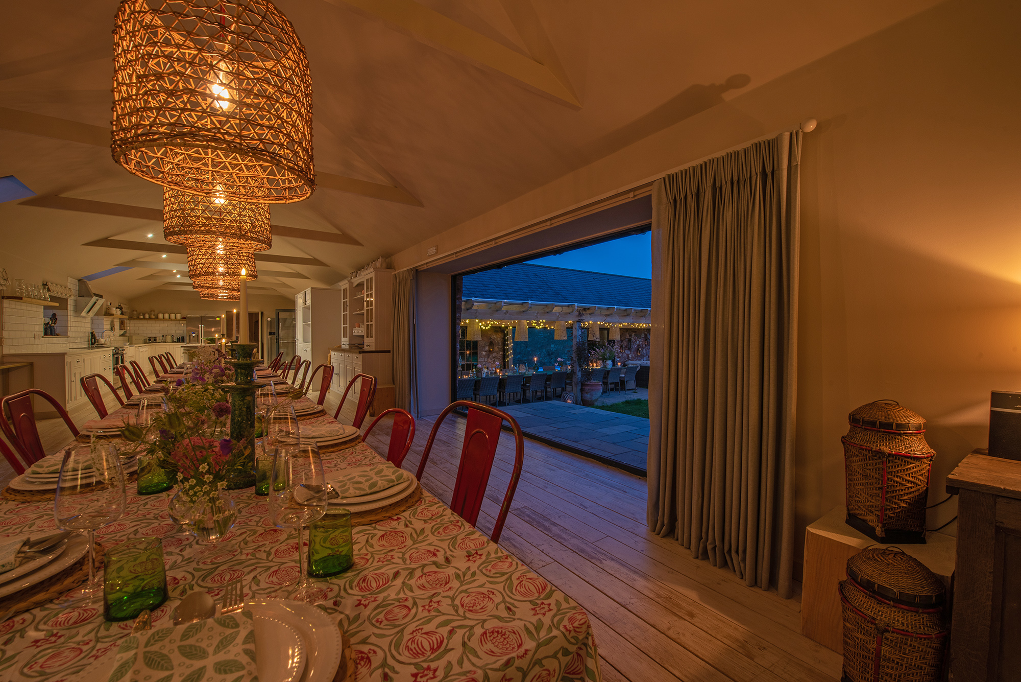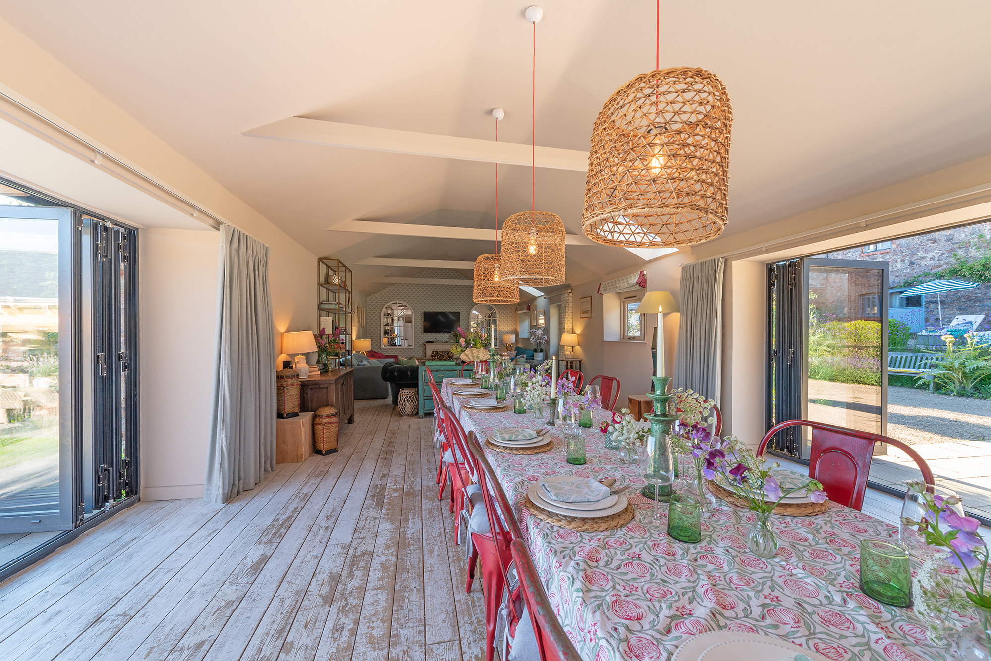 Ortensia - Full height doors pull right back either side of the dining area; outside-in -