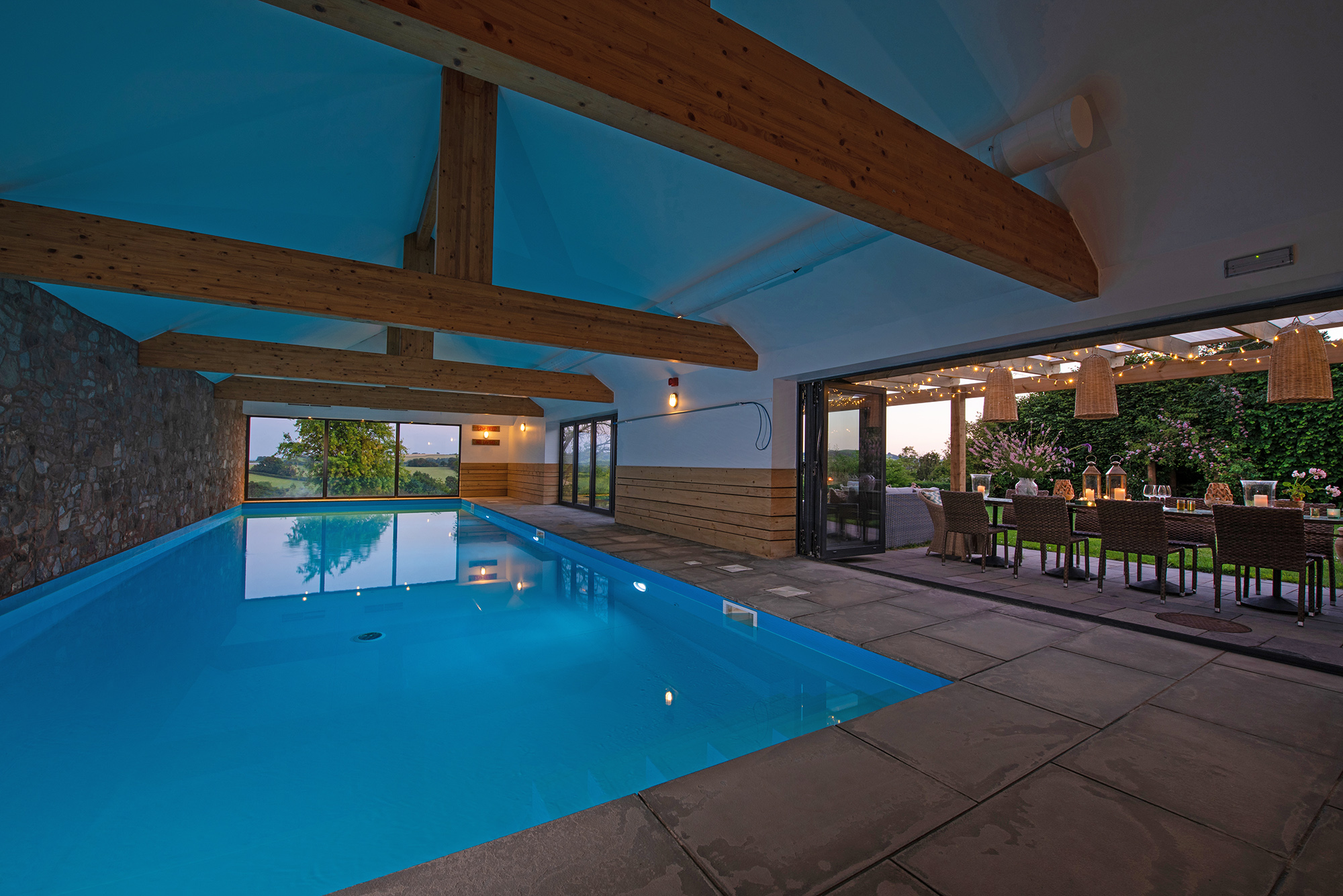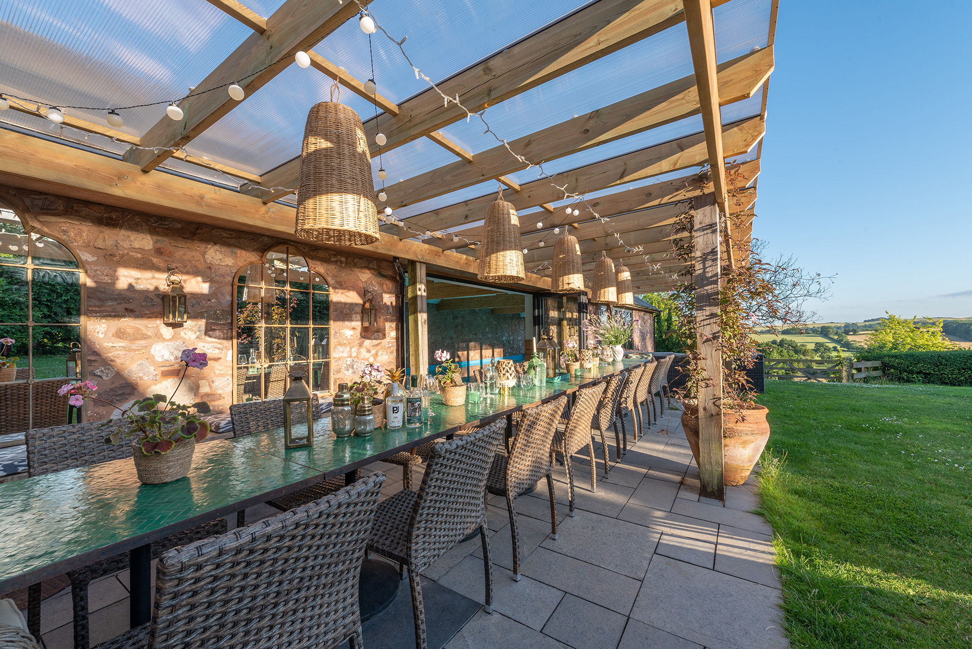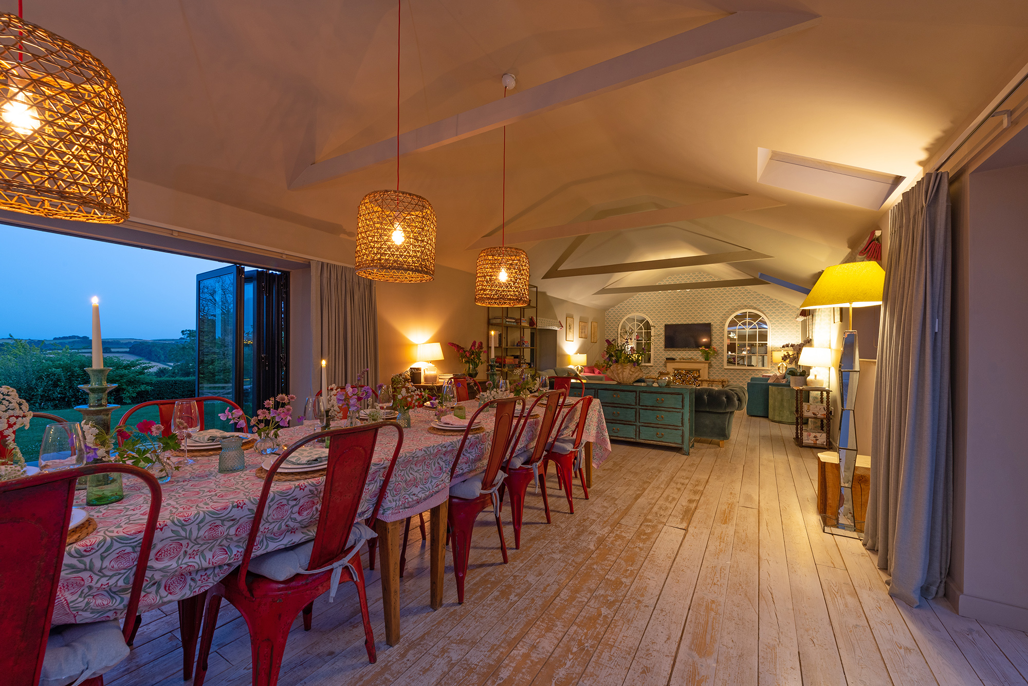 Ortensia - Full height doors pull right back either side of the dining area; outside-in -