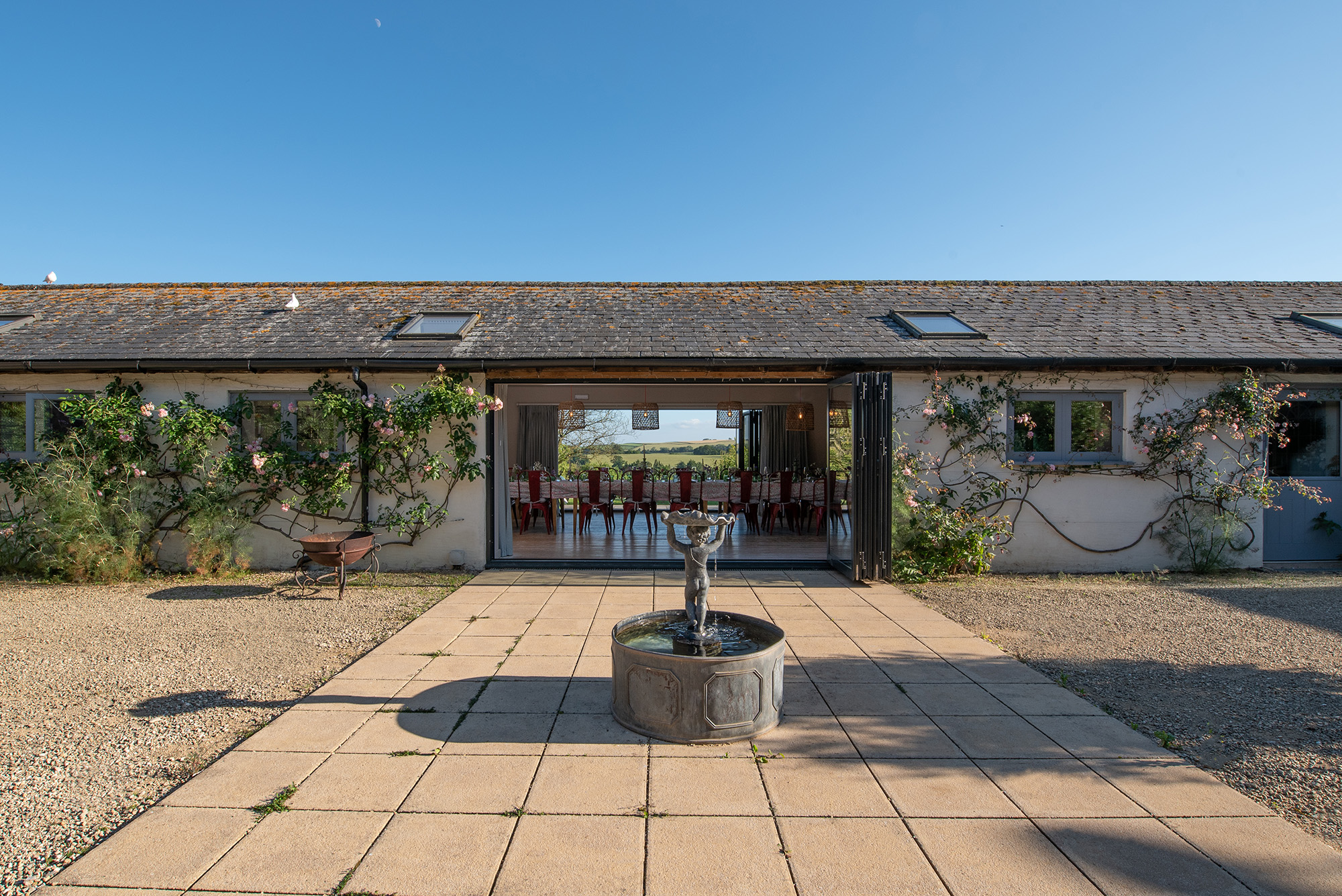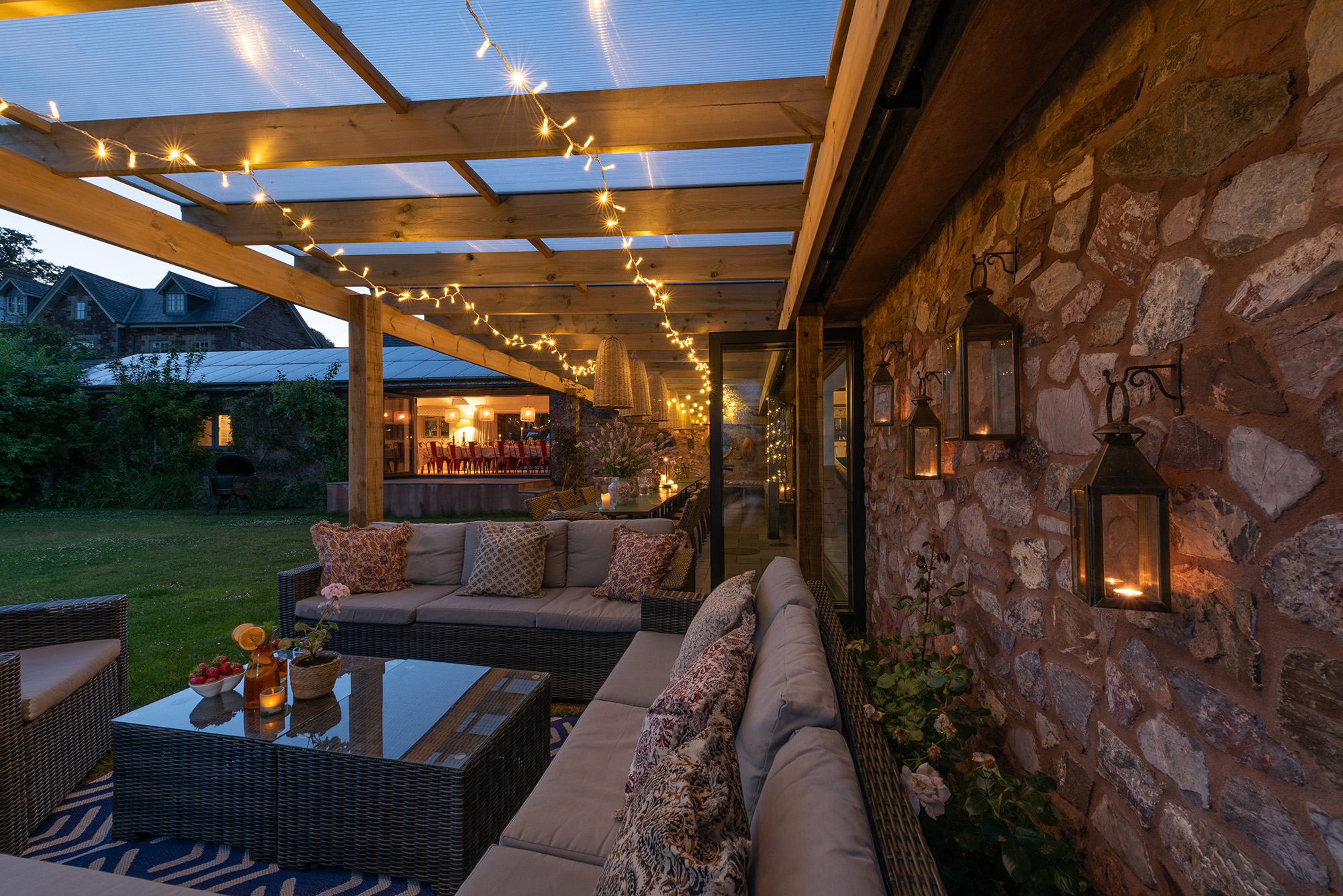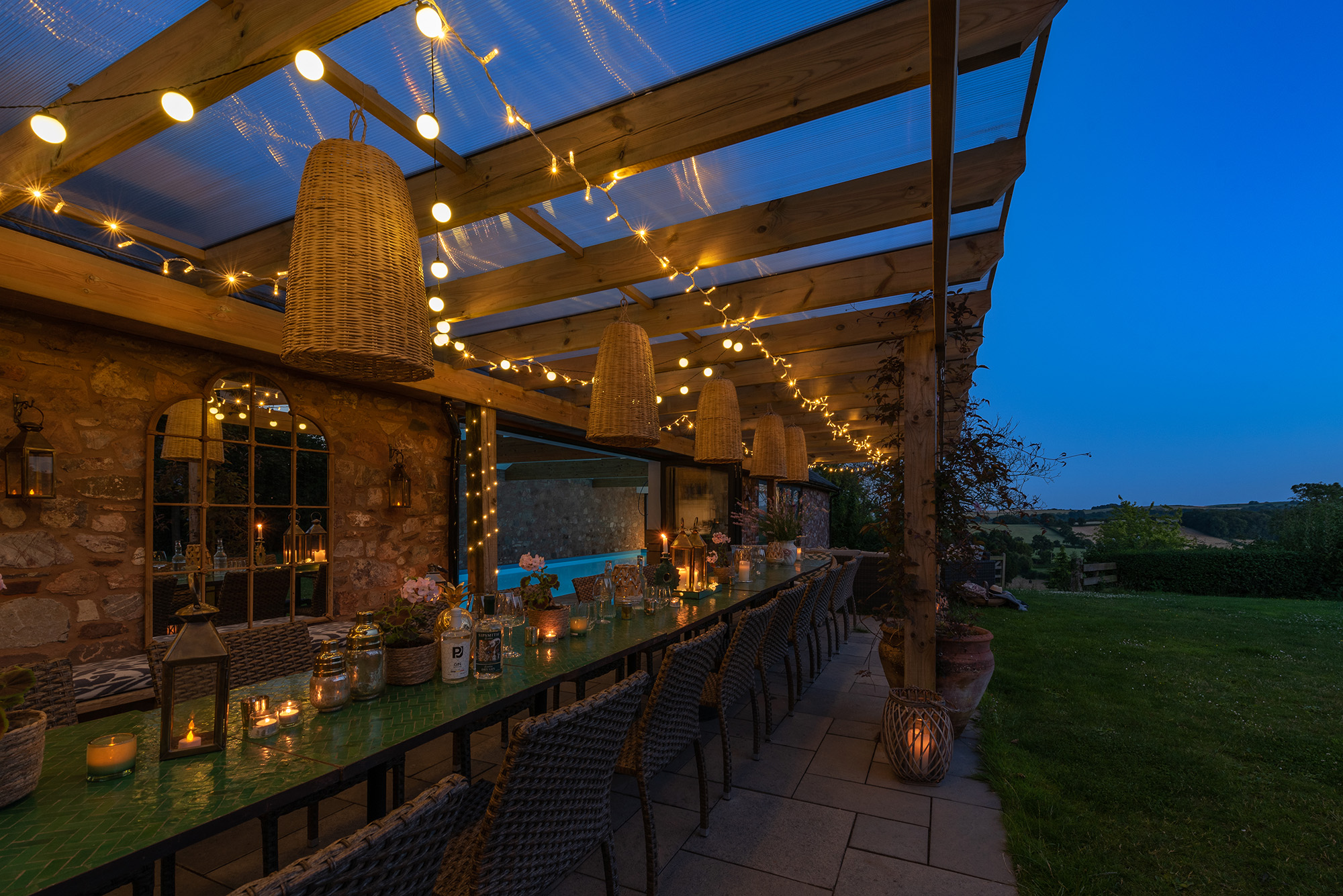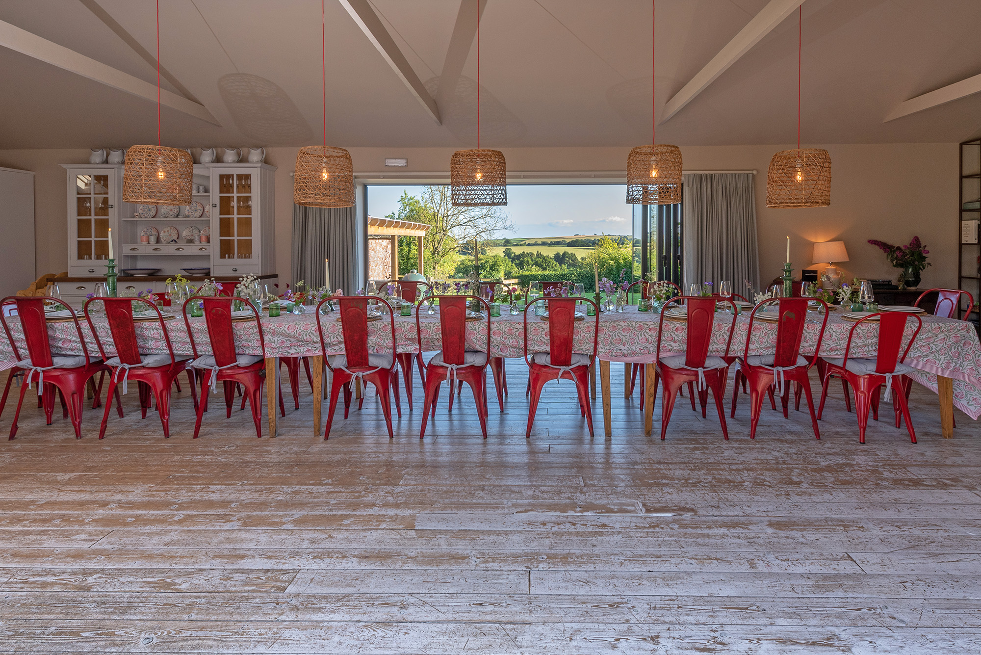 Ortensia - Full height doors pull right back either side of the dining area; outside-in -
