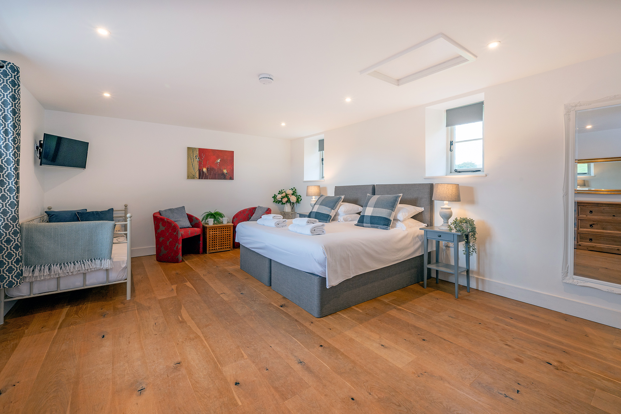 Pound Farm - Bedroom 8: A ground floor room that can have a super king or twin beds, and a single on request, plus an ensuite shower room -