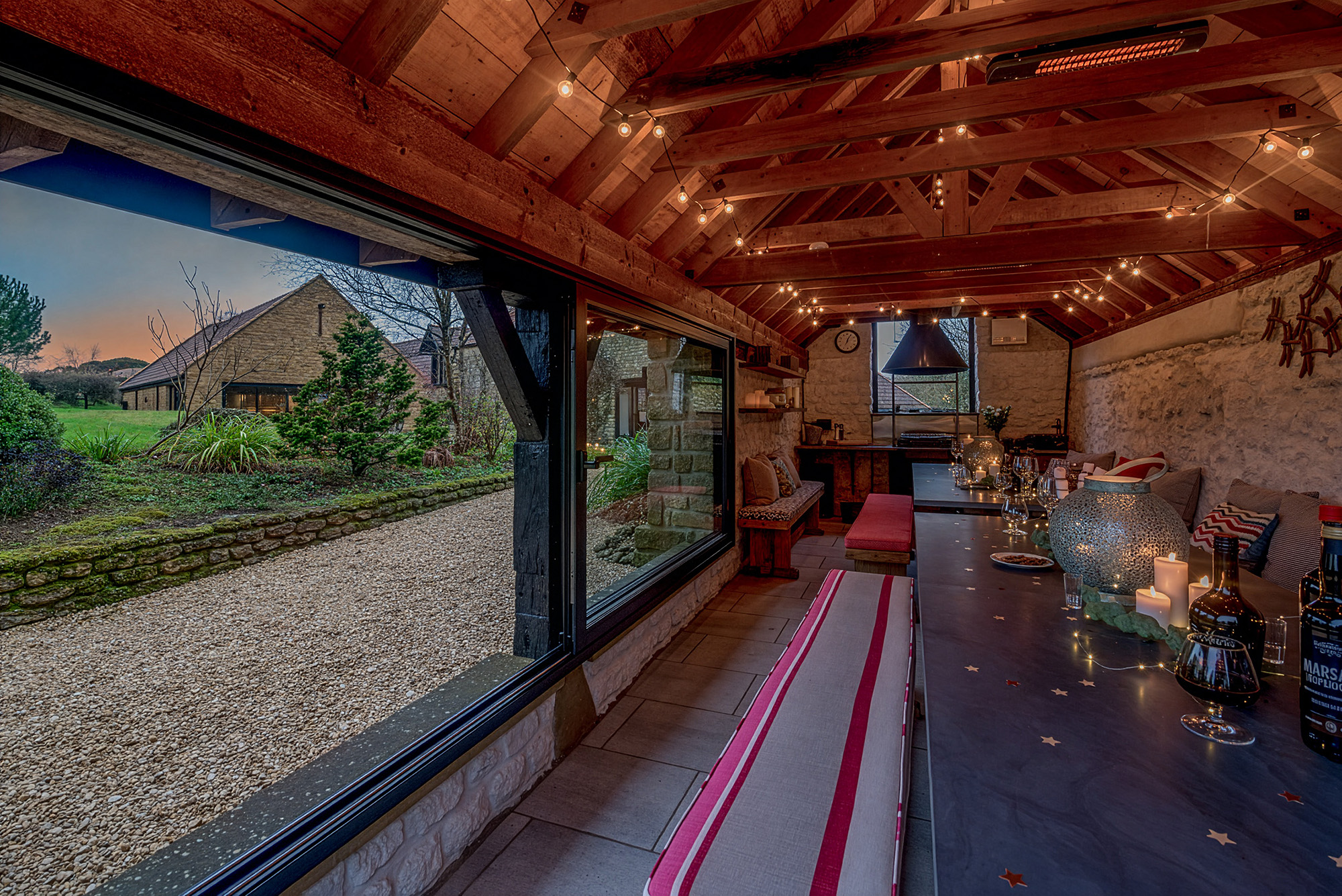 Princehay Barton: Dine alfresco beneath the twinkly lights; when it's cold close the windows, pop the heaters on -