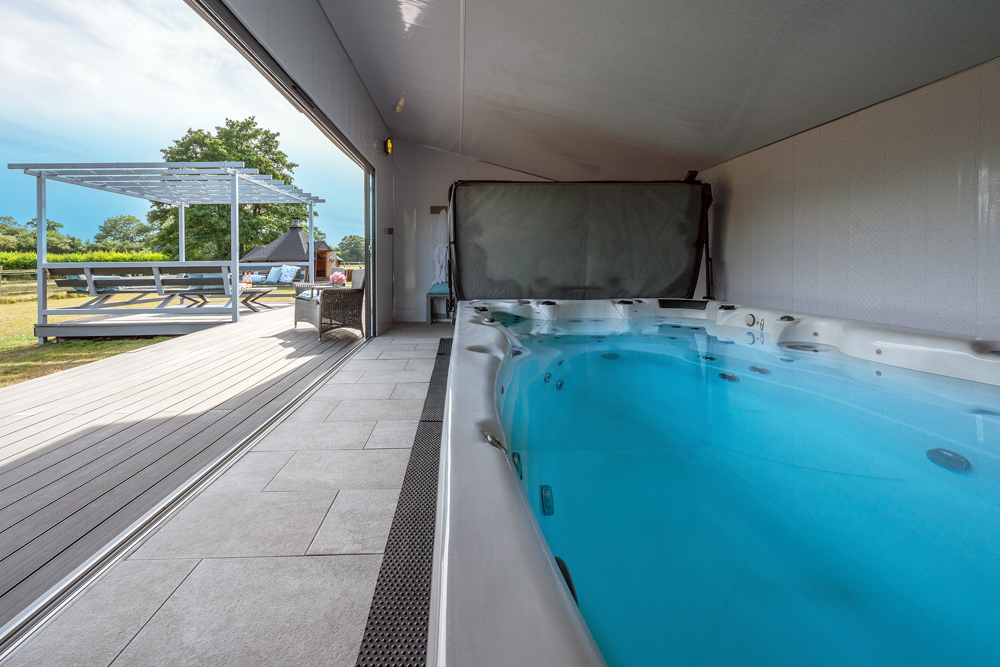 Swallows Rest - The swim spa lodge has full height bifold doors -