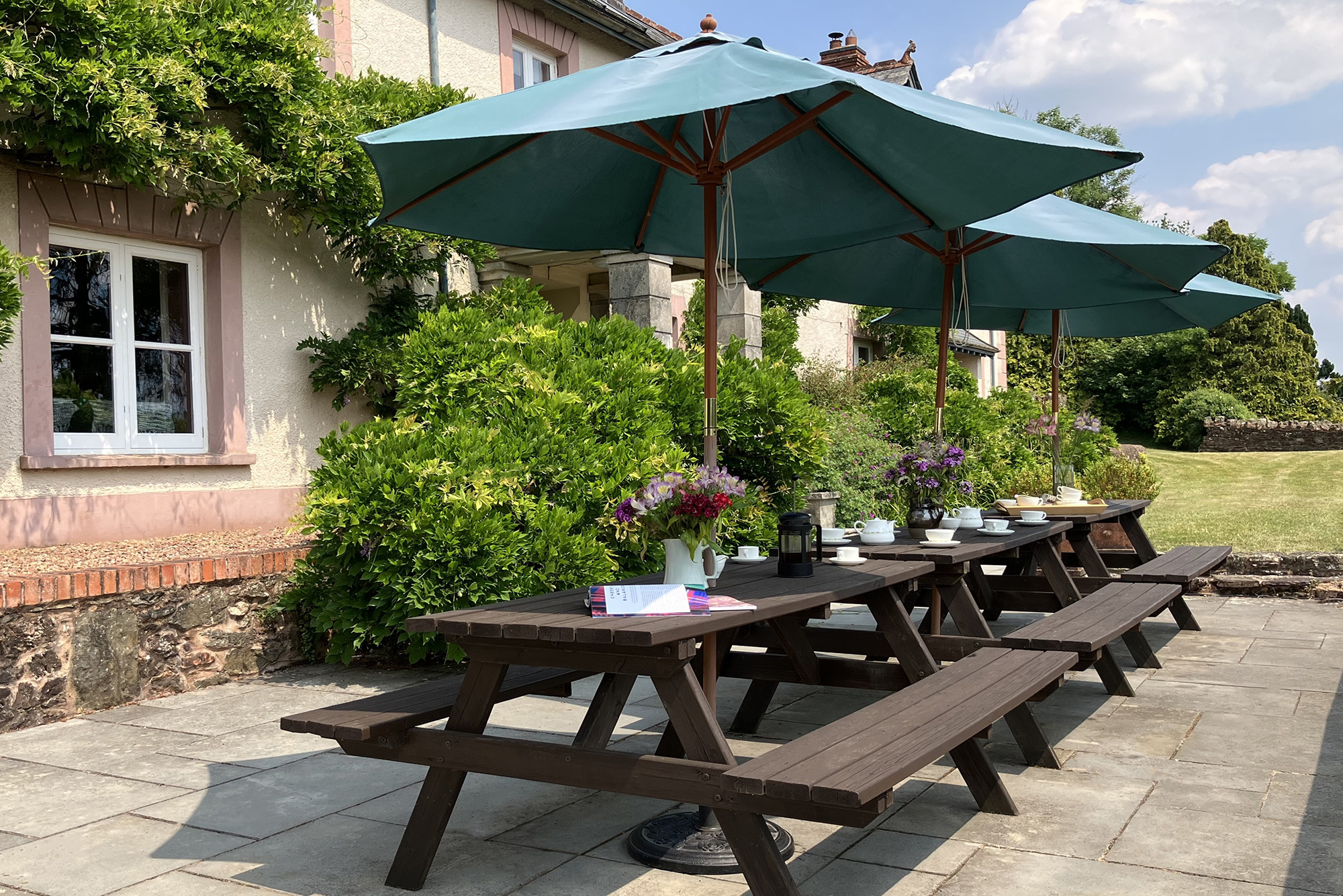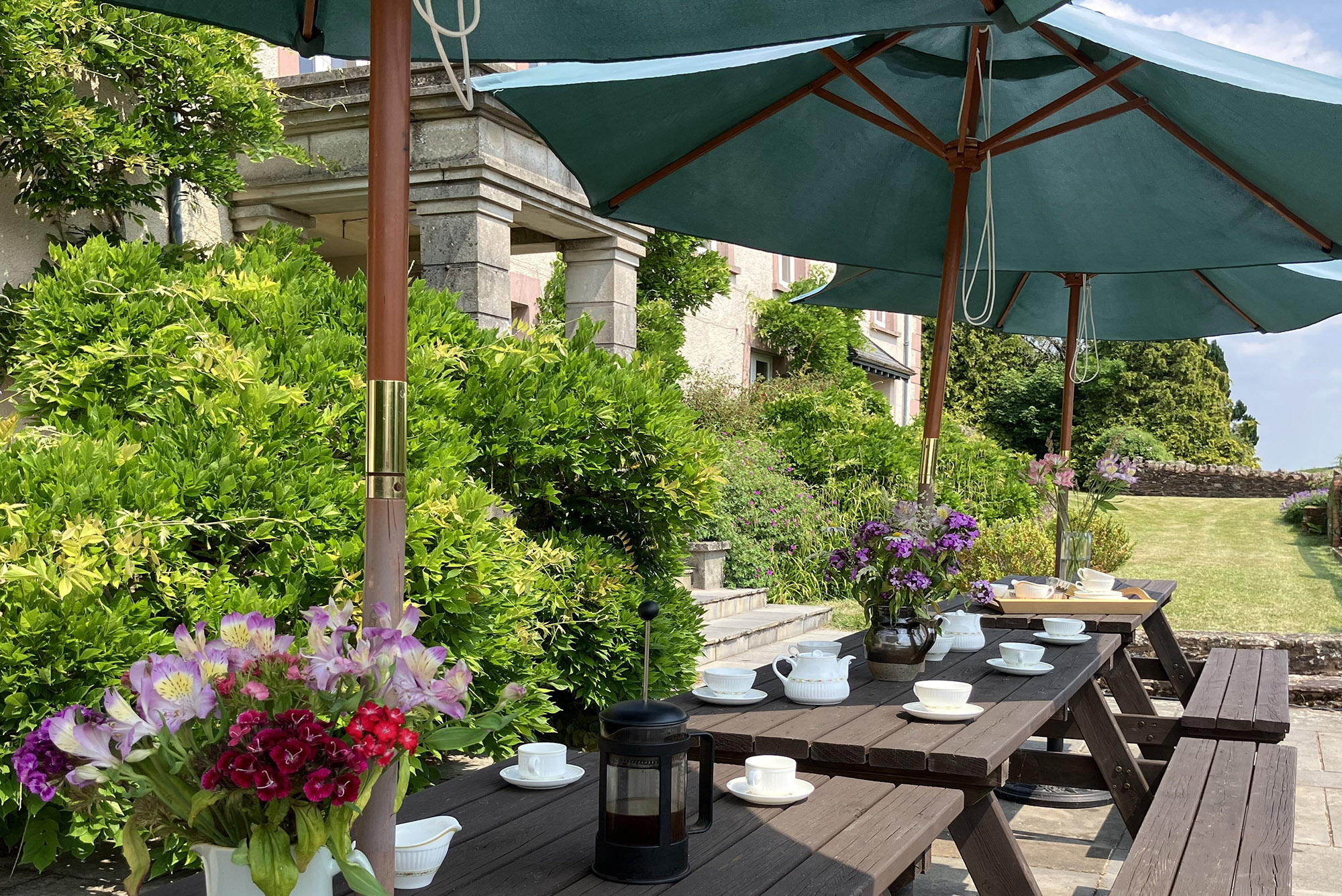 Valleys Reach - Morning coffee on the terrace at the front of the house -