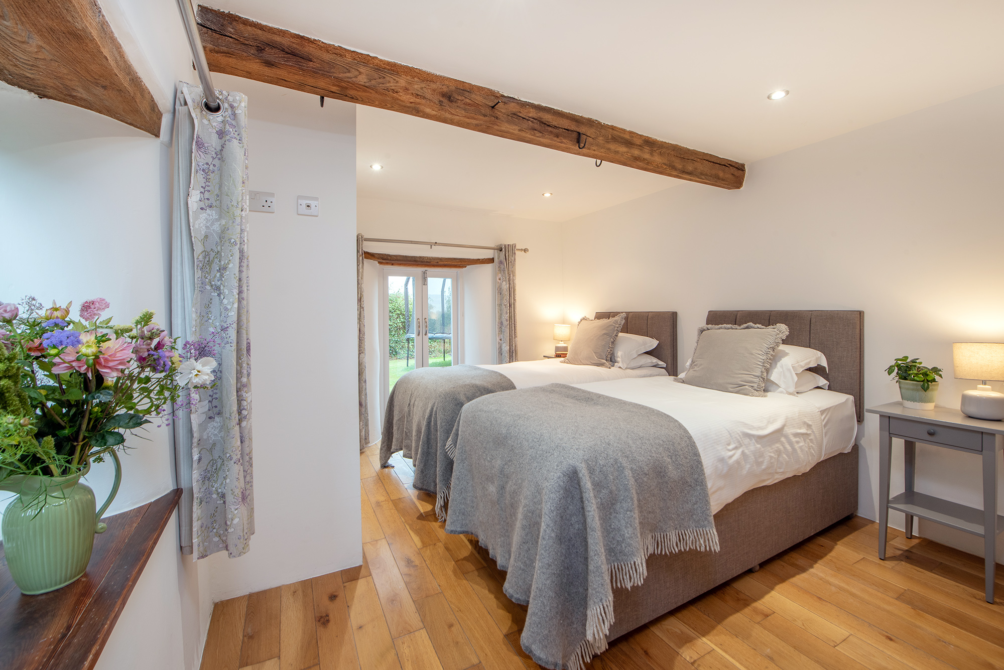 Ground floor in the annexe, zip and link beds (super king or twin), ensuite shower room