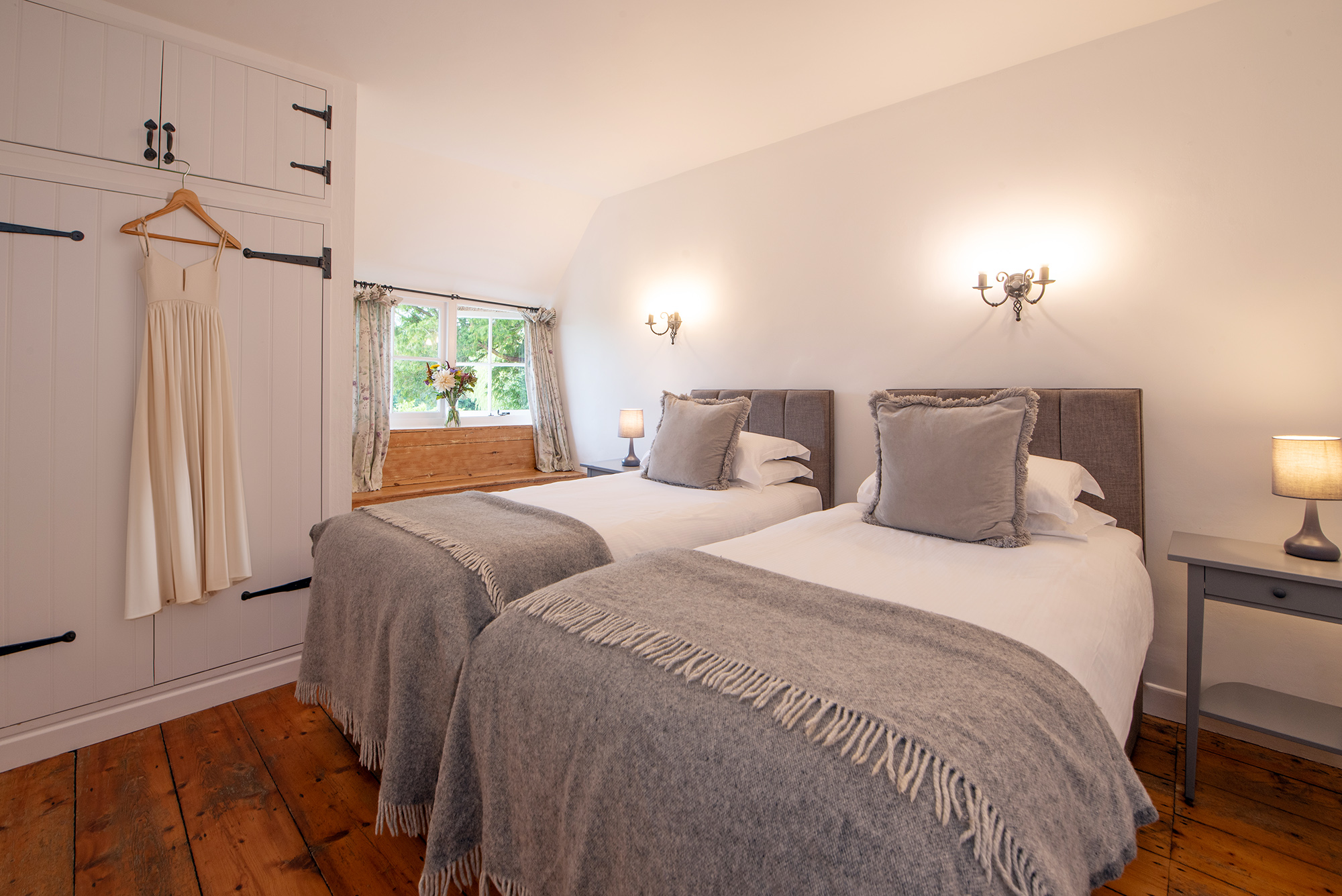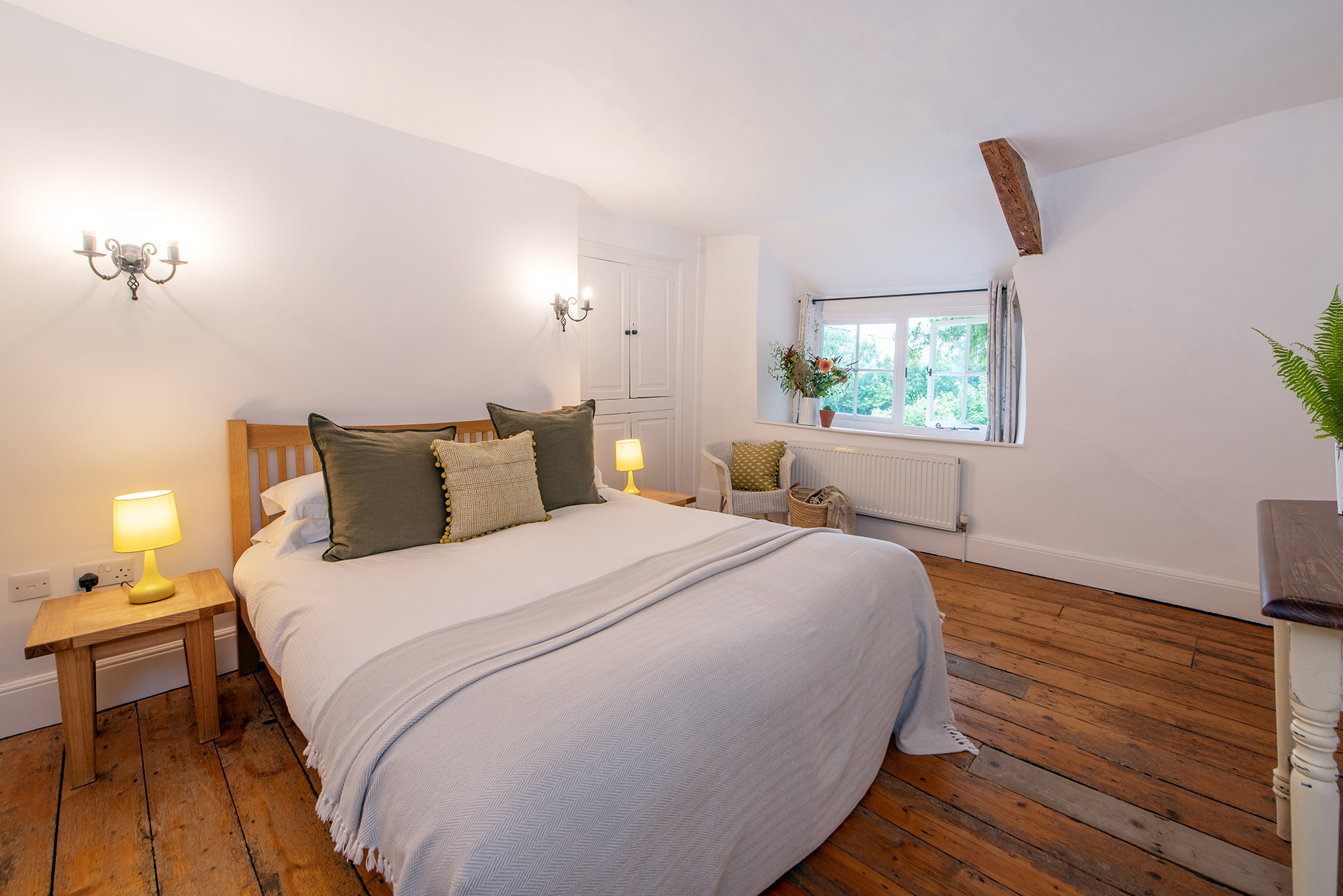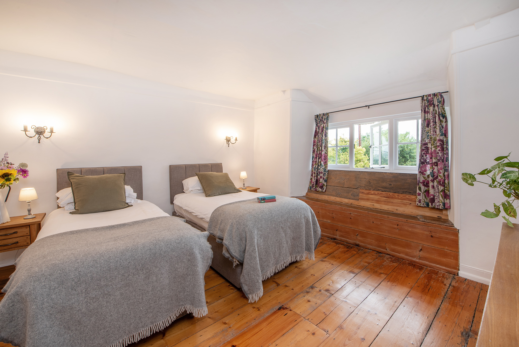 Whispering Thatch - Bedroom 2: Zip and link beds (super king or twin), a lovely big window seat, old floorboards... Bedroom 2