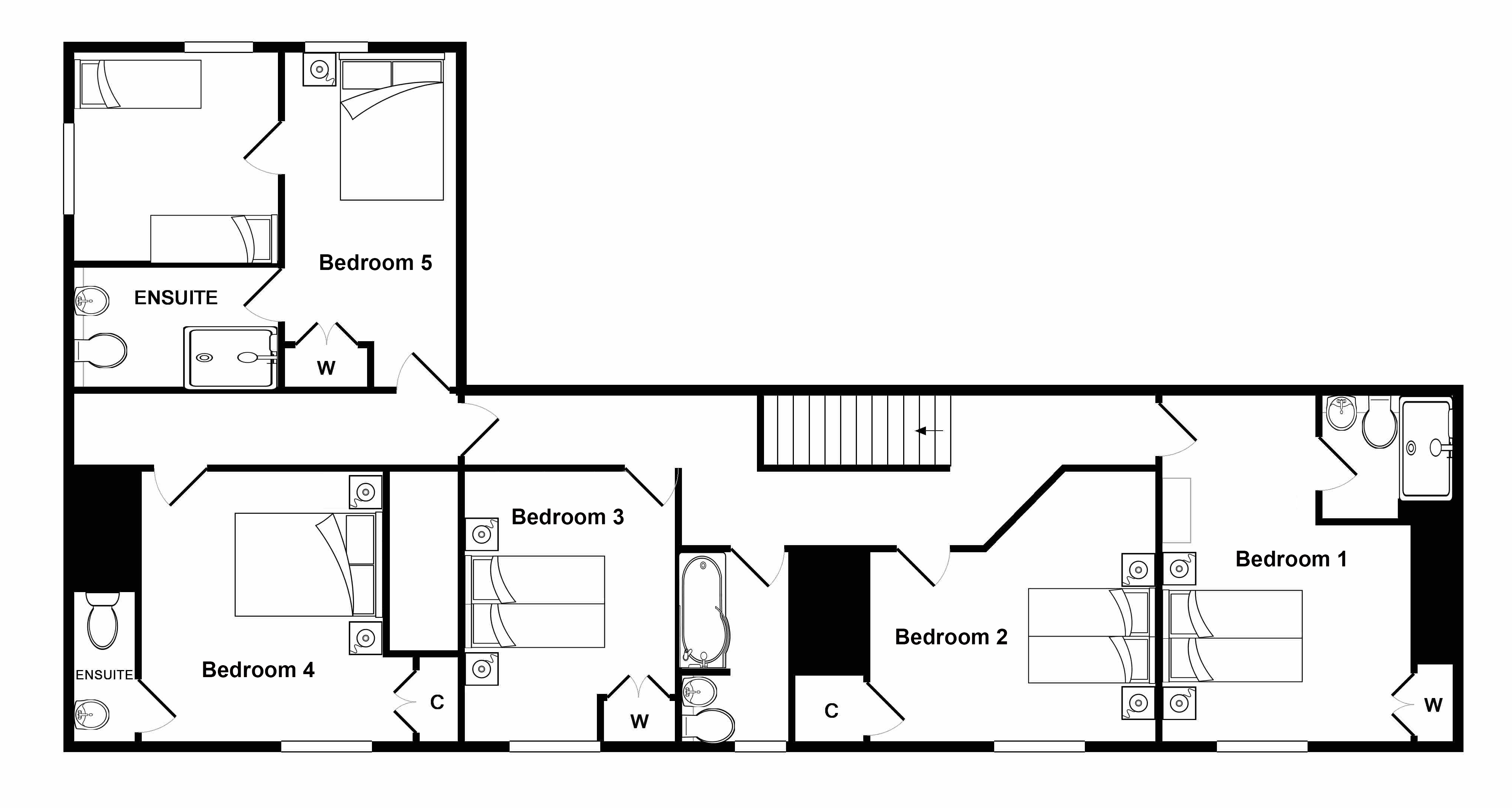 Zip and link beds (super king or twin), ensuite shower room